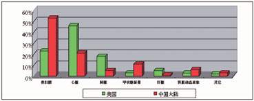 每個國家由于生活習慣、自然環(huán)境和一些遺傳因素的不同,各種疾病的發(fā)病率也有明顯的區(qū)別。這種區(qū)別就會導致臨床檢查項目的區(qū)別。由于臨床檢查項目的不同,所以臨床使用的設備也會有一定的差異。圖3所示中國大陸和美國臟器核醫(yī)學檢查比例有明顯區(qū)別。